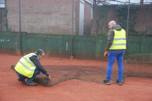 Het gaas is rondom de banen verwijderd (uitgezonderd het al vernieuwde deel bij baan 4) en de stapelmuur bij het terras bij baan 1 is steen voor steen afgebroken. Deze stenen gaan we hergebruiken om bij baan 3 een verhoogd terras te maken. In de eerste week van januari kan de aannemer een vliegende start maken, mits de (weers)omstandigheden dat toelaten.